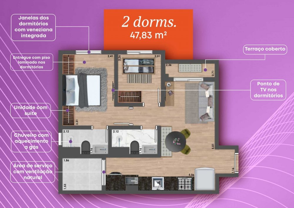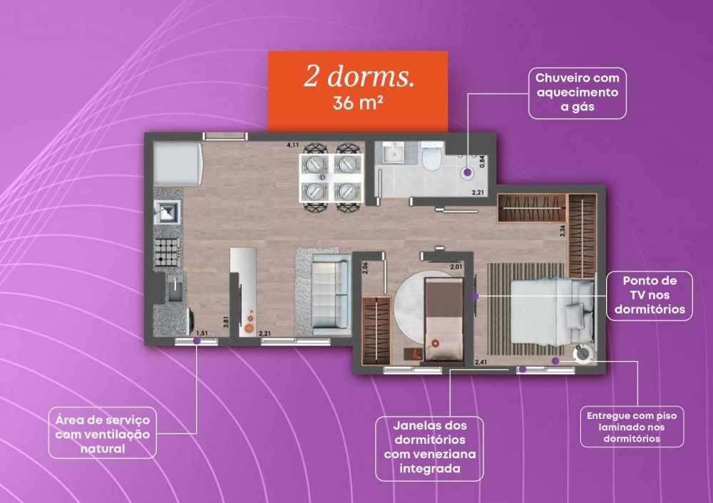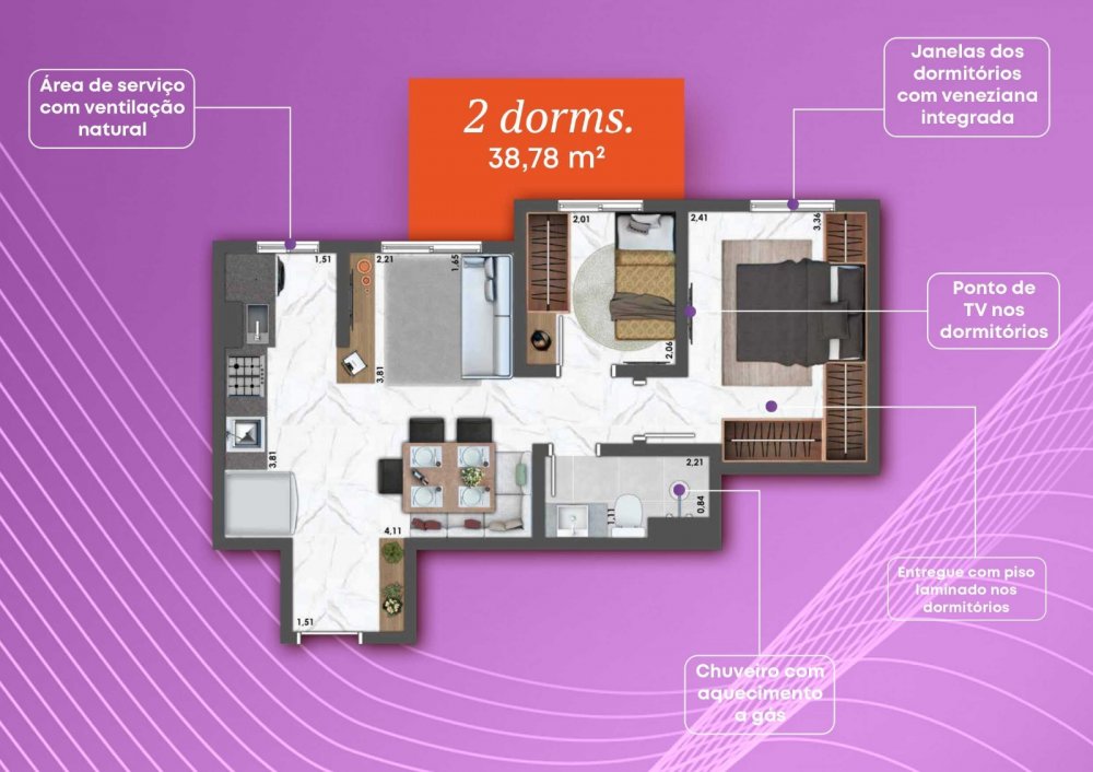 - Área Privativa: 40 m²