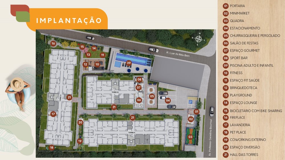 - Número de Apartamentos Por Andar: TORRE 1 e 2: 12 | TORRE 3: 8 Unidades;