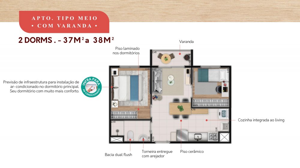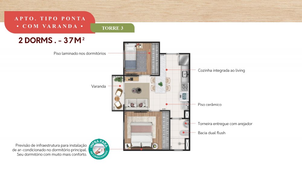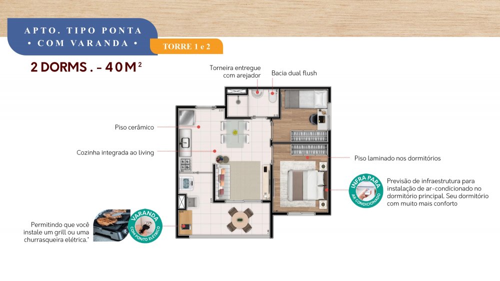 - Tipologia: 2 Dormitórios com Varanda