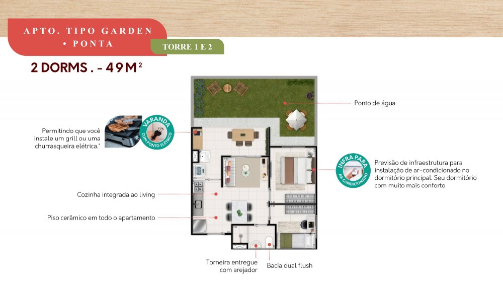 - Tipologia: 2 Dormitórios com Varanda