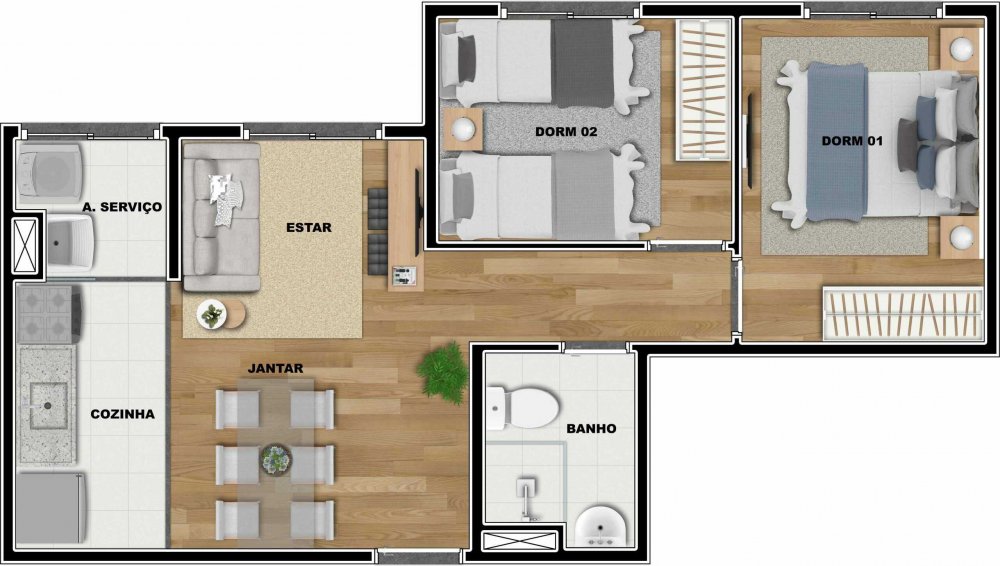 - Dormitórios2 Banheiros1
