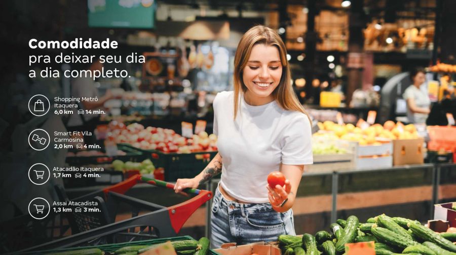 Localizado em Itaquera, na Zona Leste, bairro em crescente expansão, possui toda infraestrutura que você precisa: escolas, faculdade, supermercados, farmácias, padarias, hospitais, restaurantes, igrejas, transporte público para estações de trem e metrô, bairros adjacentes e região central de São Paulo! E o melhor, bem pertinho da natureza, pois fica próximo ao Parque do Carmo e também ao SESC Itaquera!