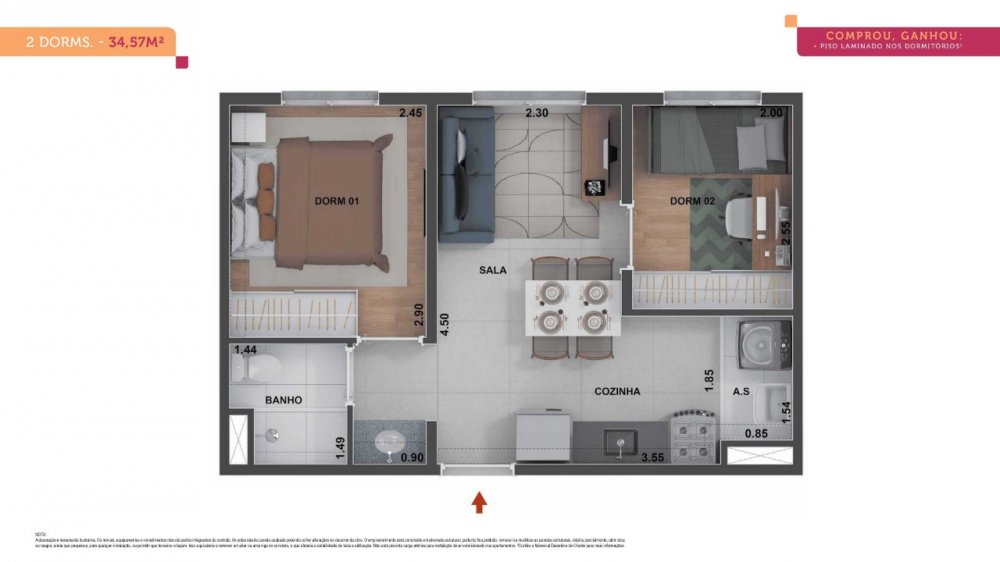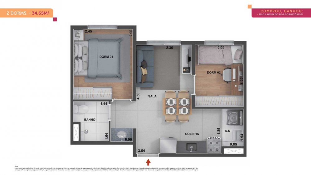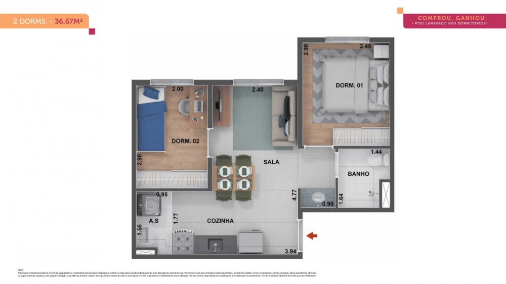 - Dormitórios2 Banheiros1