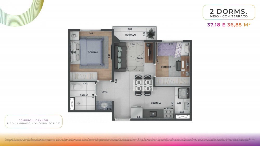 Plantas com 2 quartos, 35m² a 42m², Opções Com Terraço e Vaga de Garagem em um condomínio com lazer de clube para toda a família. Conheça!
