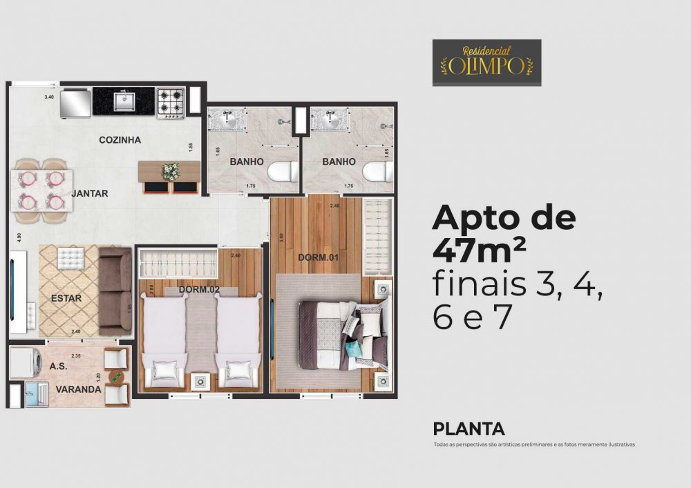 - Área Privativa: 47 m²