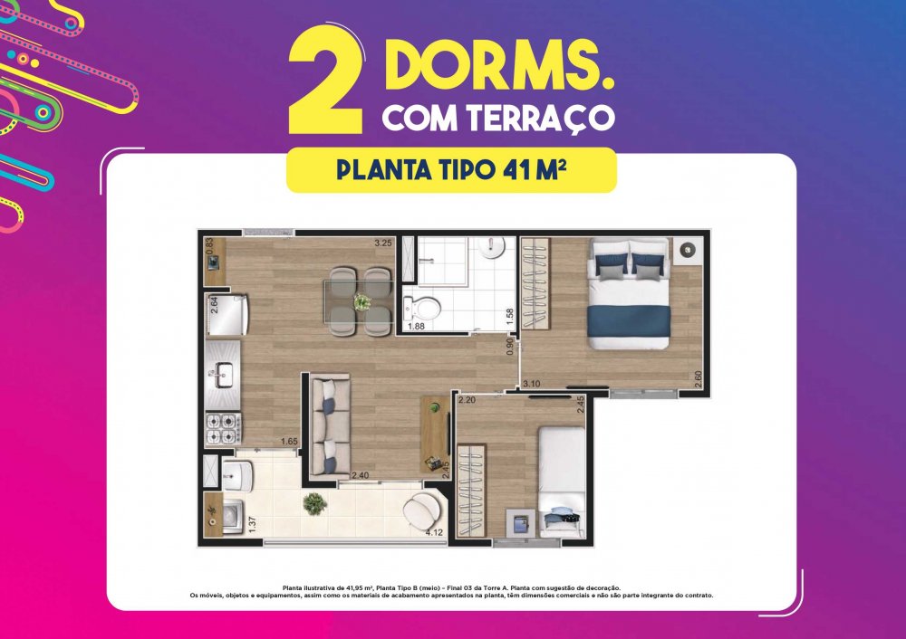 O Line São Miguel conta com apartamentos de 2 dormitórios, todos com terraço e opção de vaga na garagem. O lazer é de clube, com mais de 30 itens para diversão e entretenimento.