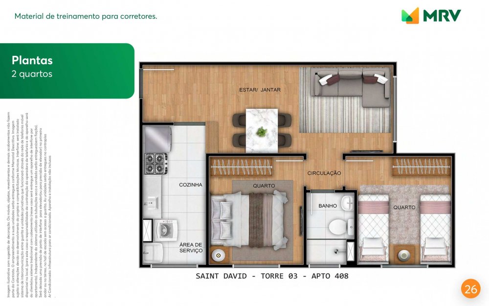 - Dormitórios2 Suítes1 Banheiros1