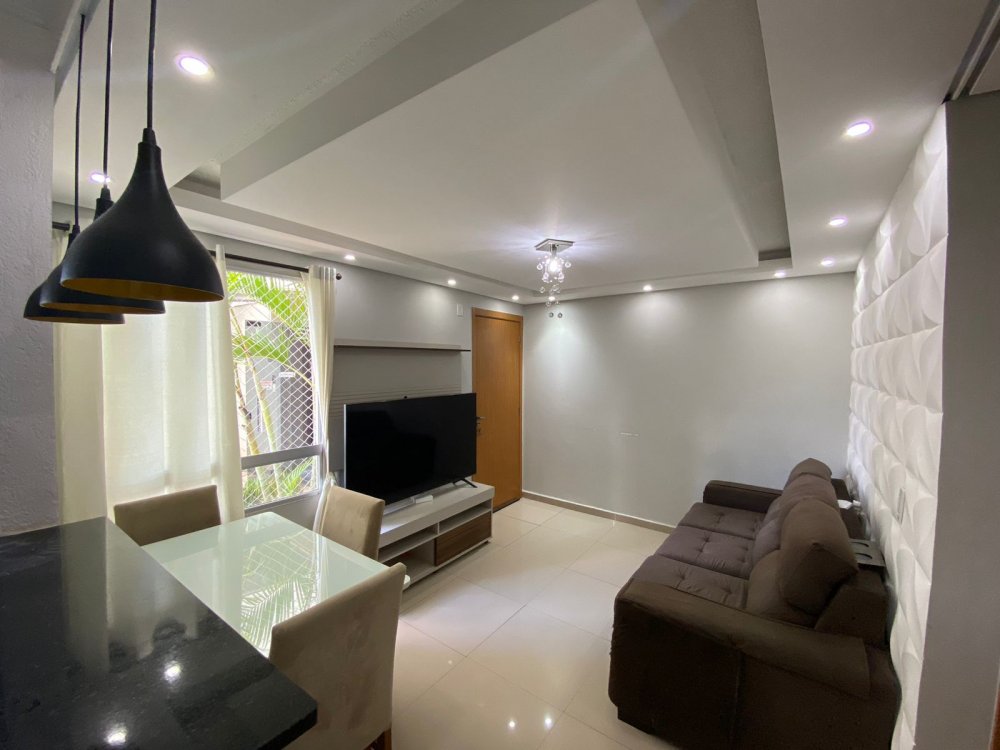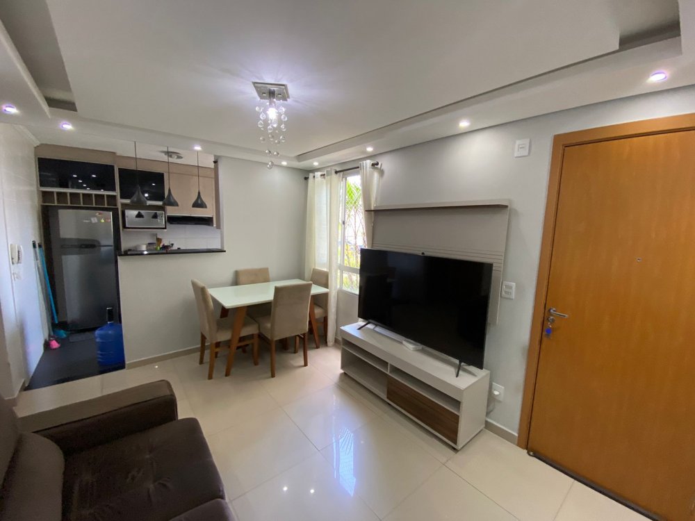 Apartamento com 42m². O imóvel conta com 2 dormitórios amplos, sala de estar com dois ambientes, cozinha americana integrada com armários planejados, área privativa como lavanderia ampla, 1 banheiro, 1 vaga de garagem.