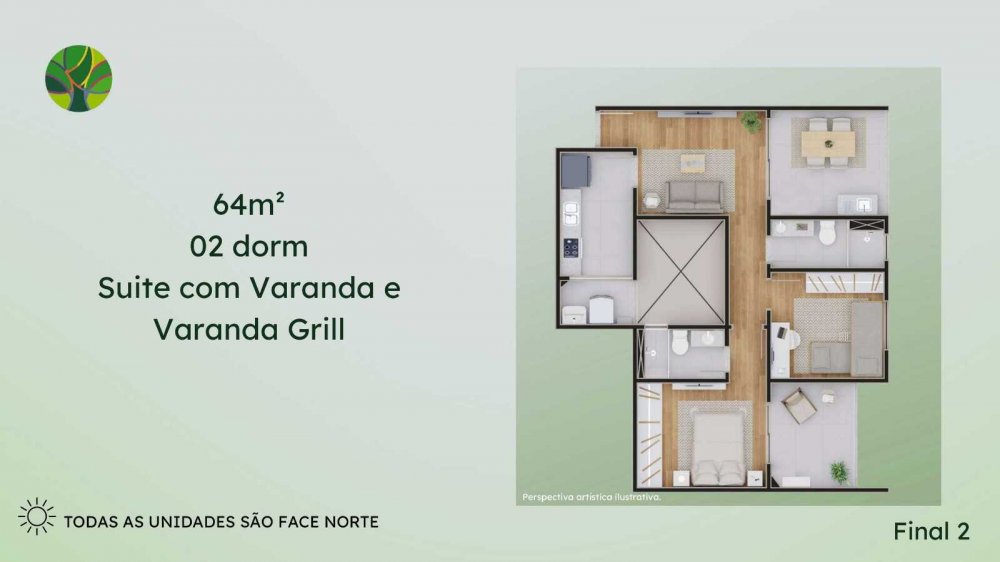 - 64 m² 2 dormitórios, Suite, Varanda Grill e Vaga