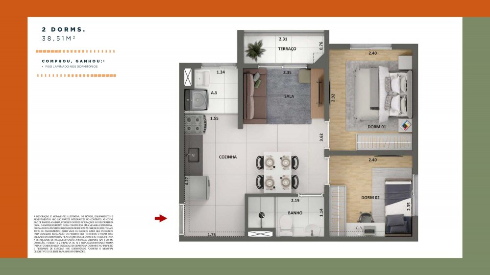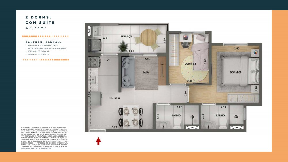 - Área Privativa: 43 m²