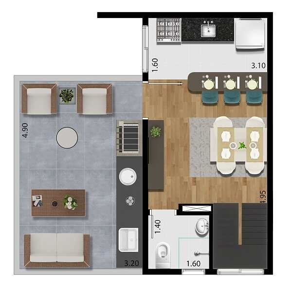 Opções duplex com 83m² e lazer completo. Apartamentos de 42m² e 43m² com 2 dormitórios, vaga e varanda.