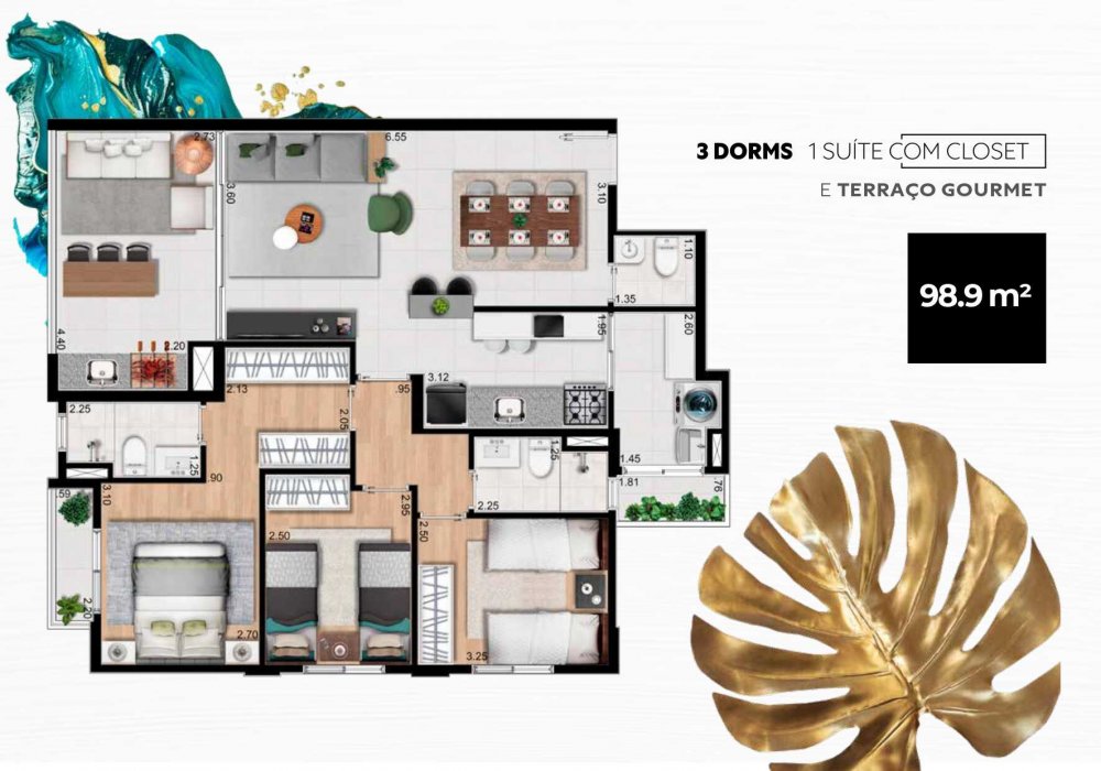 Opções 2 ou 3 dorms / 2 Suite / 99m² / Terraço Gourmet / 2 Vagas de Garagem