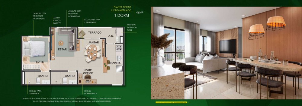 • 46m² 1 ou 2 dormitórios com varanda Gourmet / Suite / Vaga de garagem (1 OU 2 VAGAS)