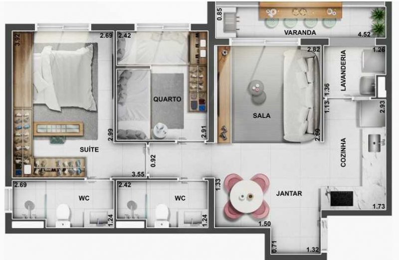 - Área Privativa: 69 m²
