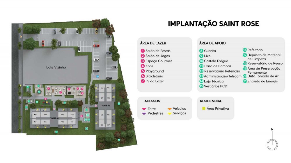 Área de lazer: Espaço Gourmet, Playground, Salão de Festas, Salão de Jogos.
