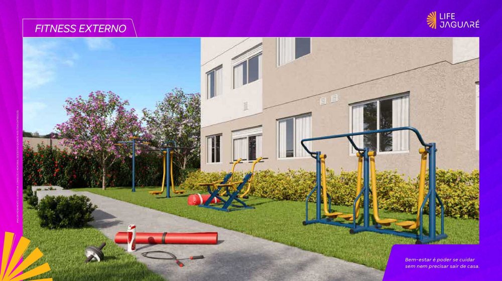 O lazer foi pensado para proporcionar bem estar para você e a sua família, com bicicletário, churrasqueira, fitness, fitness externo, pet agility, playground, sala de reunião e salão de festas.