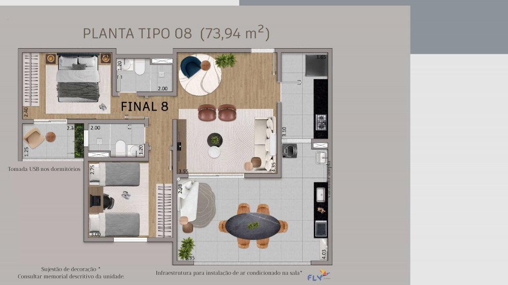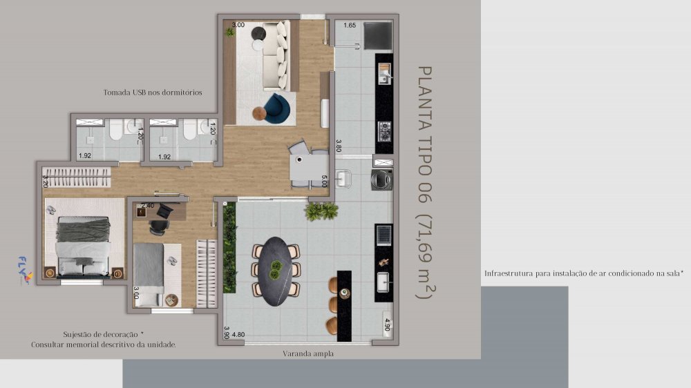 Apartamentos com 2 Dormitórios sendo (1 Suíte) com varanda plantas de 70m² a 80m², Vaga de garagem demarcadas.