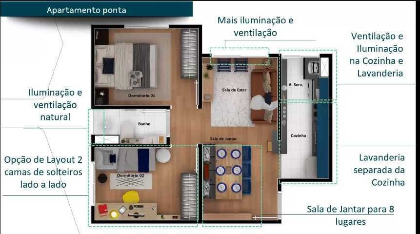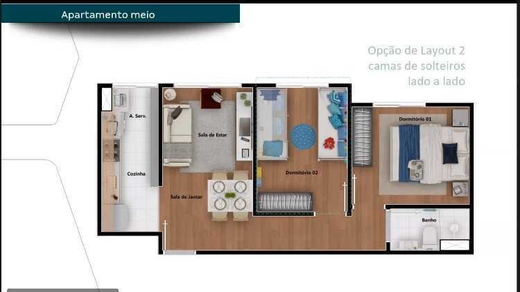 - Apartamentos com 42m² / 2 Dormitórios Com Elevador.