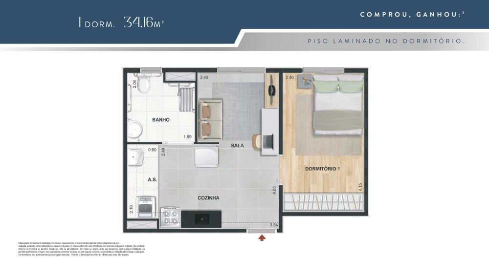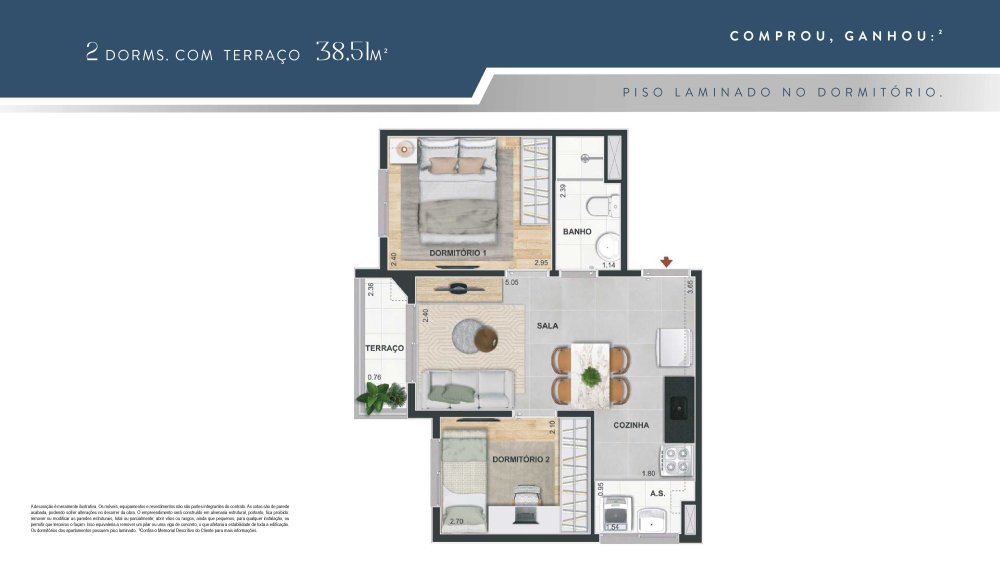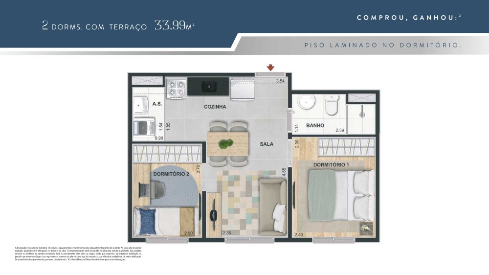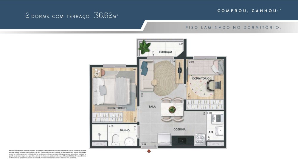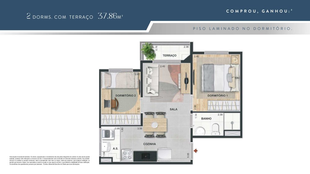 Plantas com 1 e 2 Dormitorios , 34m² a 38m², Opções Com Terraço e Vaga de Garagem em um condomínio com lazer de clube para toda a família. Conheça!