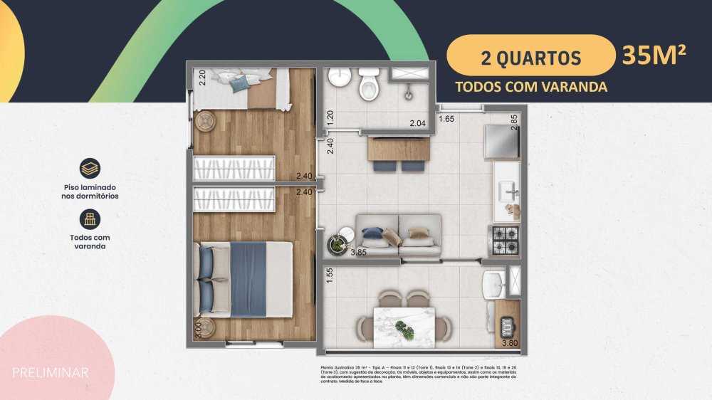 Áreas Comuns: Piscina, salão de festas, churrasqueira, brinquedoteca, fitness/academia, coworking, pet place, playground, bicicletário, espaço gourmet