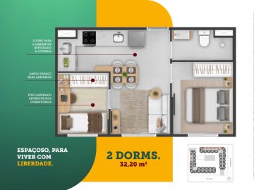 - Opções de Aptos 1 ou 2 Dormitórios / Varanda / Plantas de 26m² a 38m² / Lazer Completo