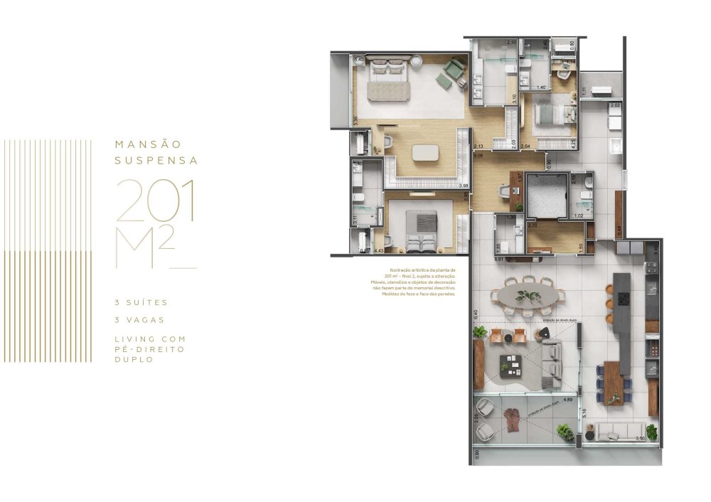 - MANSÓES SUSPENSAS / OPÇÕES DE 201M² A 251M² / 4 SUITES / 3 OU 4 VAGAS