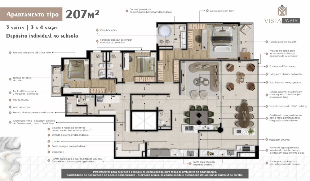- Apartamentos tipo de 207 m² com 3 vagas