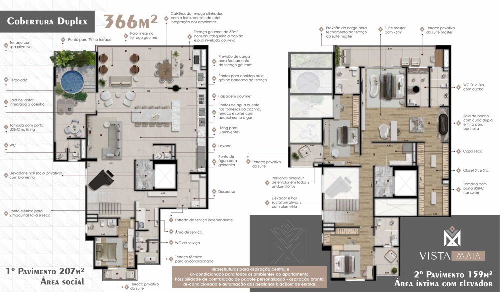 - Coberturas de 370 m² com 6 vagas