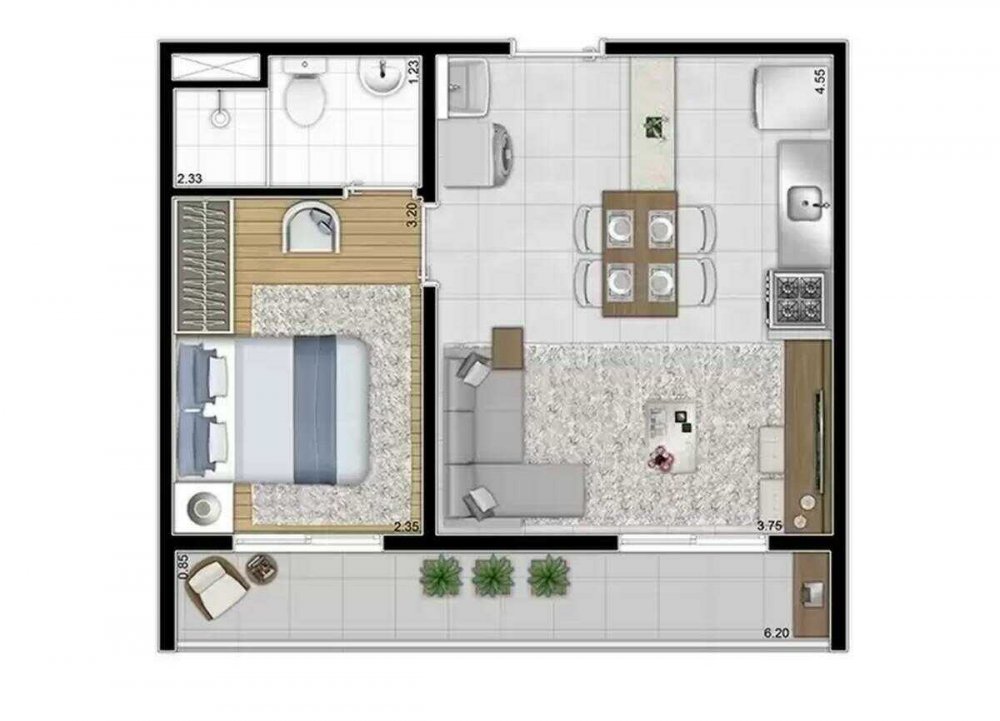 - Metragem: 26m² a 37m²