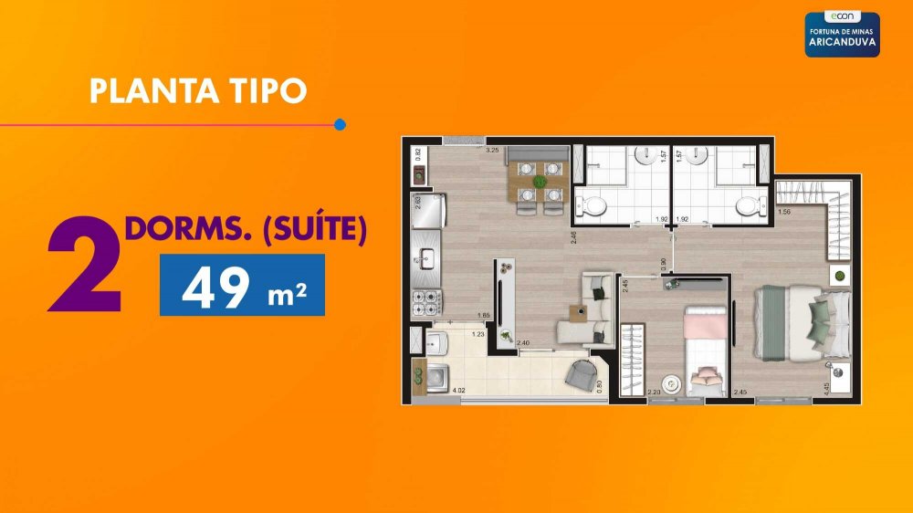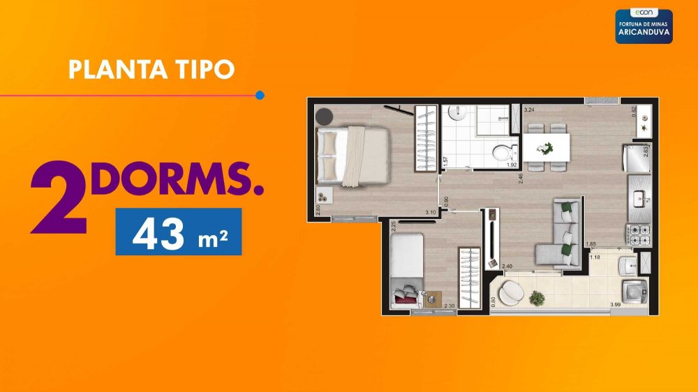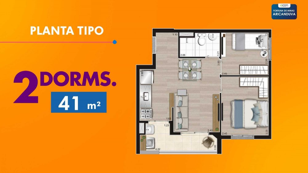 - Área Privativa: 40 m²