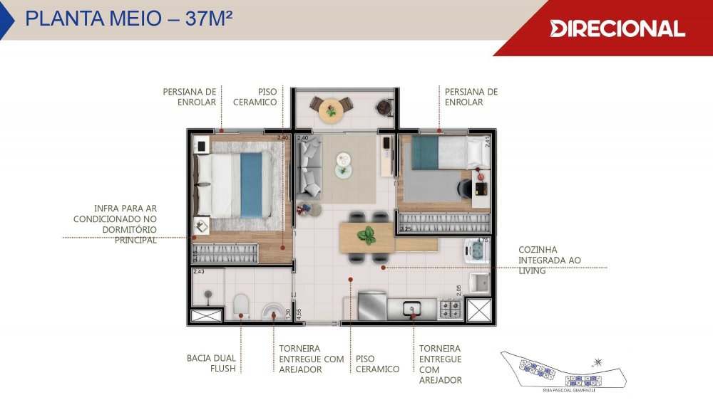 - Tipologia: Apartamento de 2 Dormitórios / Varanda Gourmet