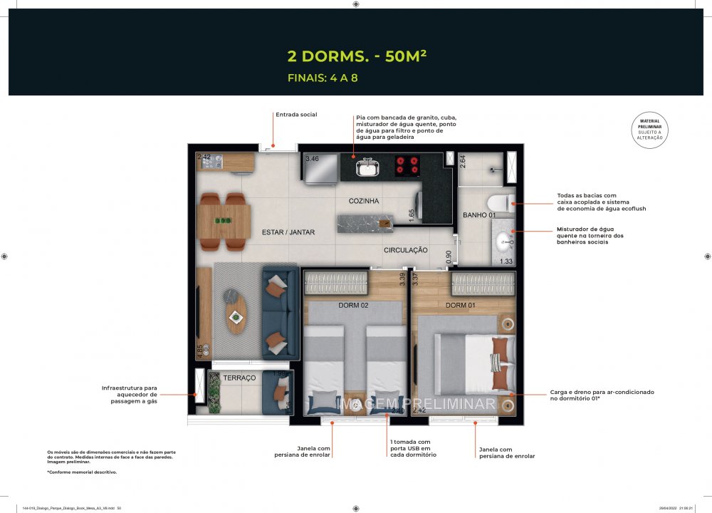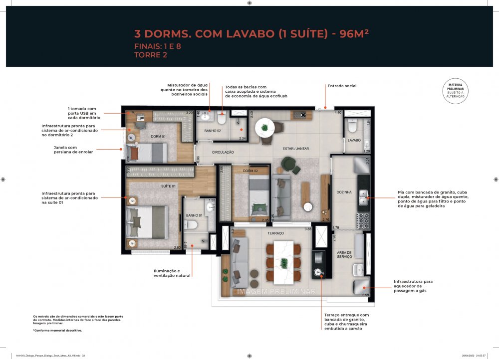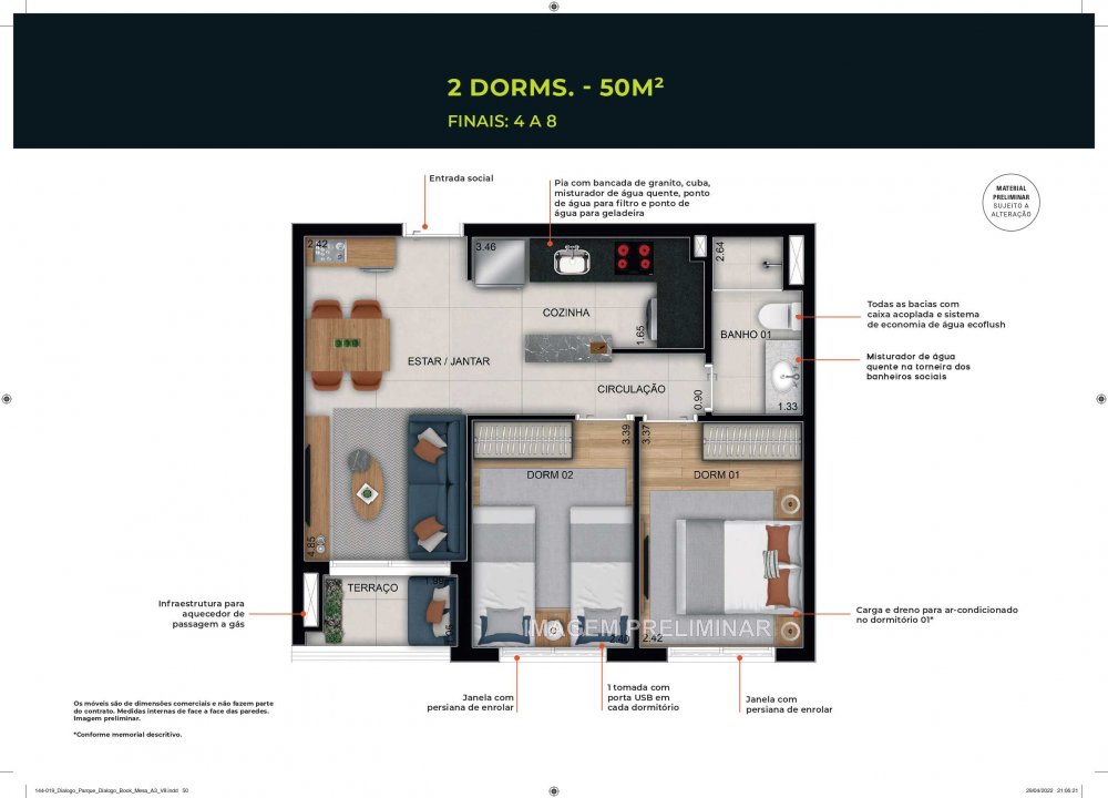 Por fim, o condomínio tem segurança na rua. Parque Diálogo Padre Adelino Home é um lançamento, com previsão de entrega para o mês 06/2025. Nossa última dica: fica à 600 m da Estação Belém, da linha Vermelha do Metrô.