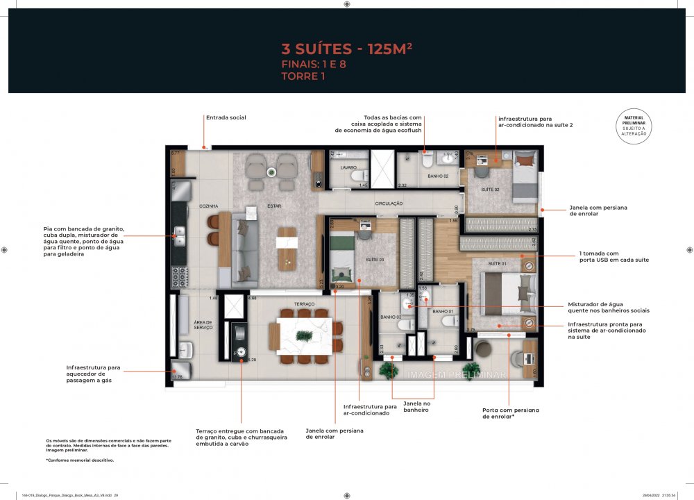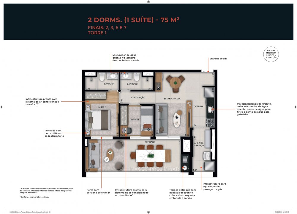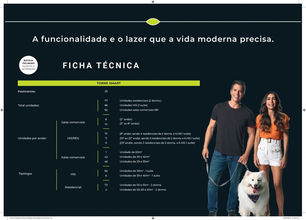 O empreendimento oferece apartamentos de 2 a 3 dormitórios, com área útil de 75M² a 201m², Com 1 a 3 suítes, 2 a 4 banheiros.
